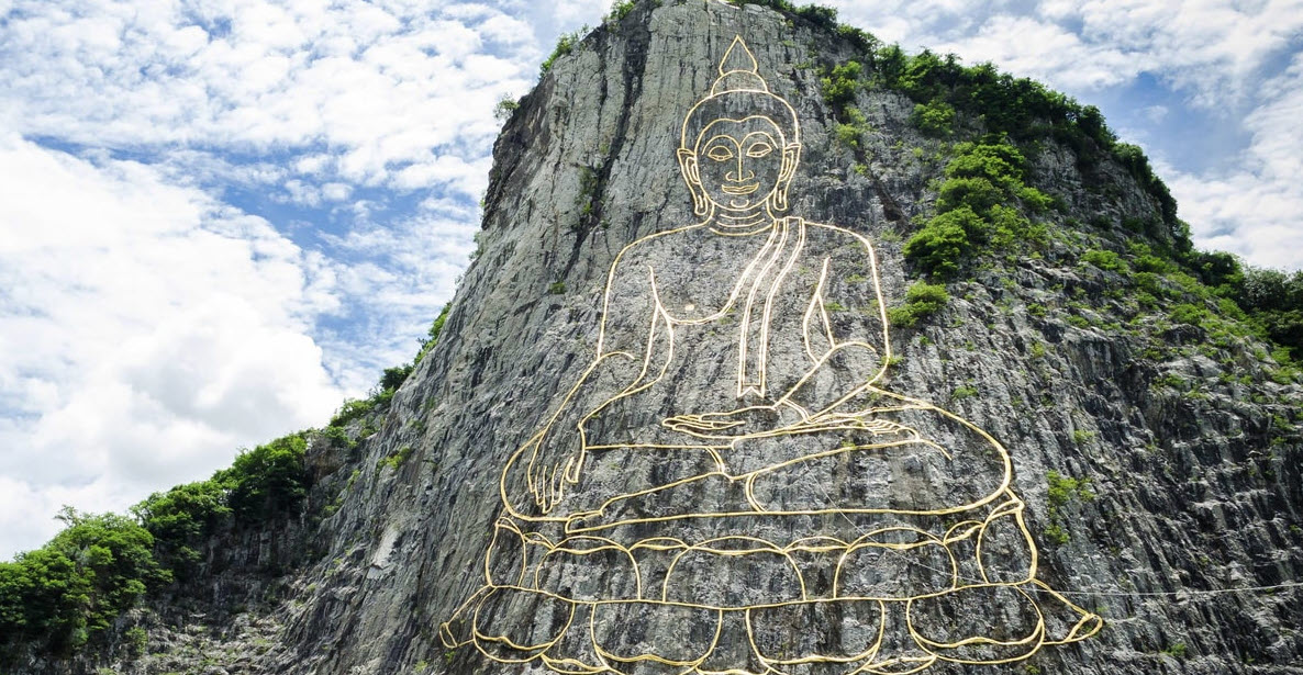 В стране, где храмы встречаются на каждом углу, скала Кхао Чи Чан выделяется сразу тремя вещами — необычной формой, гигантским размером и сочетанием древнего буддизма с современной техникой.