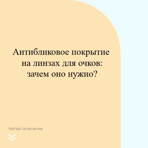 Вы когда-нибудь замечали, как блики и отражения мешают видеть чётко? Особенно это заметно в условиях яркого освещения, при работе с цифровыми устройствами или при вождении автомобиля. Решение проблемы — антибликовое покрытие на линзах для очков. Что такое антибликовое покрытие? Это специальное покрытие, которое уменьшает или устраняет блики и отражения, возникающие при попадании света на поверхность линз. Чем полезно антибликовое покрытие? Как определить, что на линзах есть антибликовое покрытие? Антибликовое покрытие обычно имеет определенный цвет рефлекса: голубовато-зеленый, реже голубой, зеленый, синий, золотистый или сиреневый. Если при повороте линзы вы замечаете переливы цвета, это признак наличия антибликового покрытия. Не отказывай себе в комфорте и заботе о зрении — выбирай линзы с антибликовым покрытием! Отправь нам свой рецепт и пожелания по использованию линз, мы сделаем подборку линз именно для тебя. ПО ВСЕМ ВОПРОСАМ ОБРАЩАТЬСЯ: по телефону +78123097585 на почту zakaz@