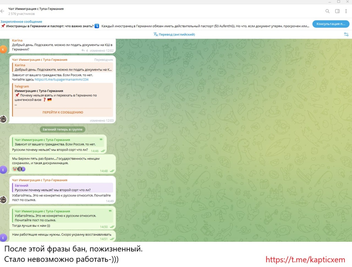 На скрине более мягкий вариант мелкого профканала, пару фраз удалось закинуть. Но у врага все на контроле. Модераторы не спят.