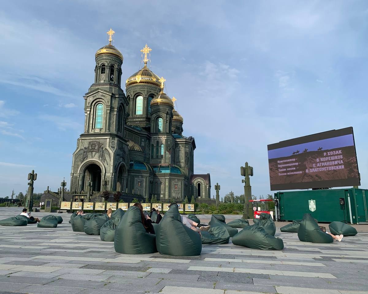 Афиша бесплатного кинопоказа под открытым небом в Музейно-храмовом комплексе в Кубинке