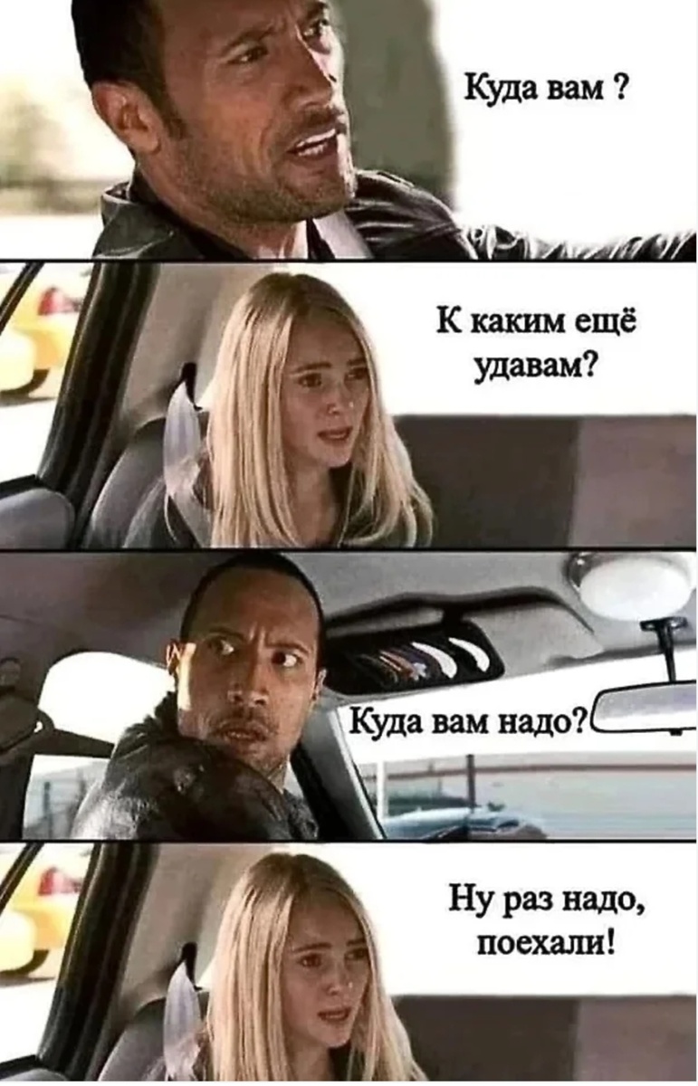 _ Женщина, я припарковался там, где мне навигатор точку подачи указал. В адресе есть пометка - магазин Магнит. Он в 20 метрах от места, где я вас ожидаю. Или вы думали, что я в магазин заеду, к кассам - вас забрать?