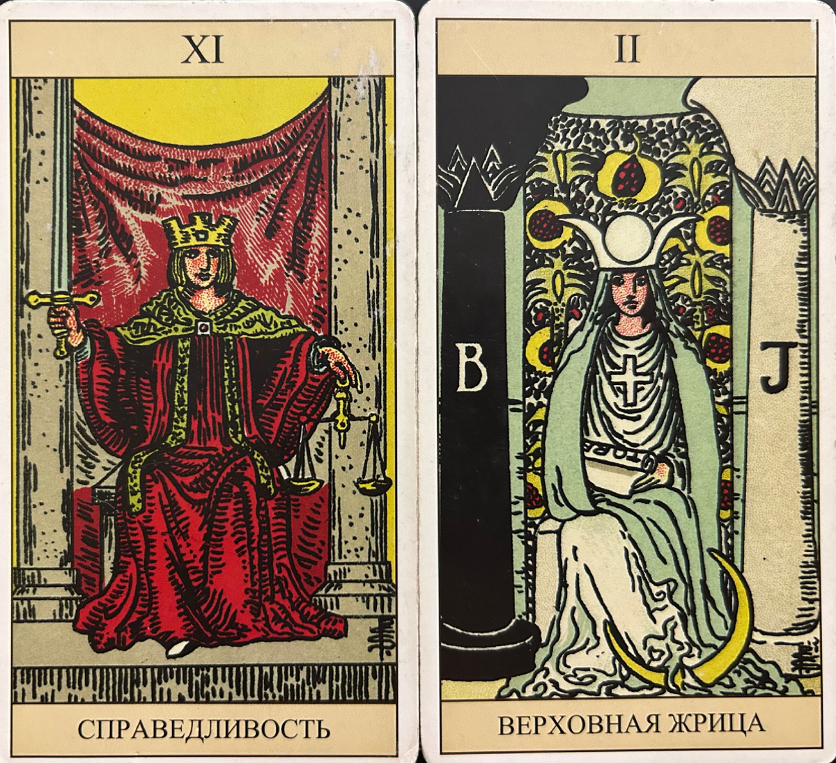 Когда эти две дамы появляются в раскладе, становится ясно: просто так никто никого отпускать не будет. Справедливость и Верховная Жрица — это тихие, но мощные фигуры, которые не ведутся на показуху. Но вот беда — одна действует через логику, вторая — через интуицию. Вопрос: кому вы поверите больше? «Я взвешиваю. Анализирую. И выдаю вердикт без сантиментов.» Это логика, объективность, документы, принципы. Справедливость ищет баланс и причинно-следственные связи. У неё весы и меч, и если ты врёшь, она это очень вежливо, но чётко отрежет. «Я не объясню, откуда я это знаю. Просто знаю.» Это интуиция, тайна, скрытые процессы. Верховная Жрица не требует улик, потому что чувствует суть вещей. Она может молчать, но внутри — как ураган. И если вы пытаетесь её обмануть — удачи. Она уже давно всё поняла, только не сказала. Справедливость — это ум, который ищет порядок. Верховная Жрица — это душа, которая знает, где правда. Одна говорит: "Докажи." Вторая — "Прочувствуй." Идеально, если они идут