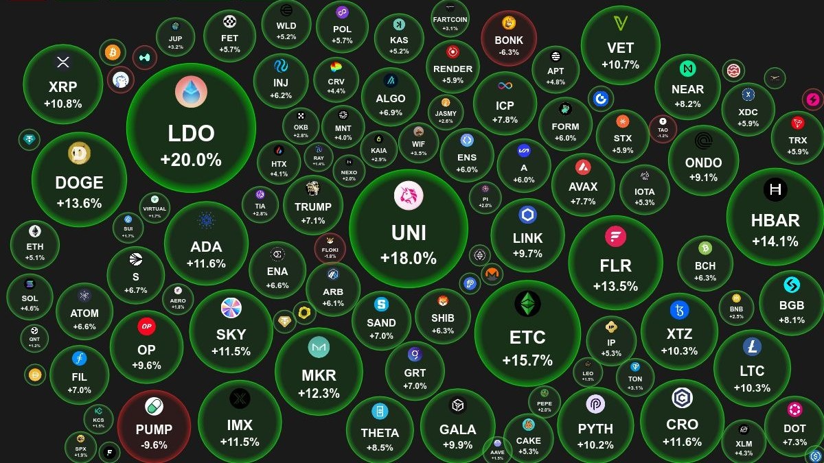 🟢 Uniswap (UNI): $10.61 (+18%)
