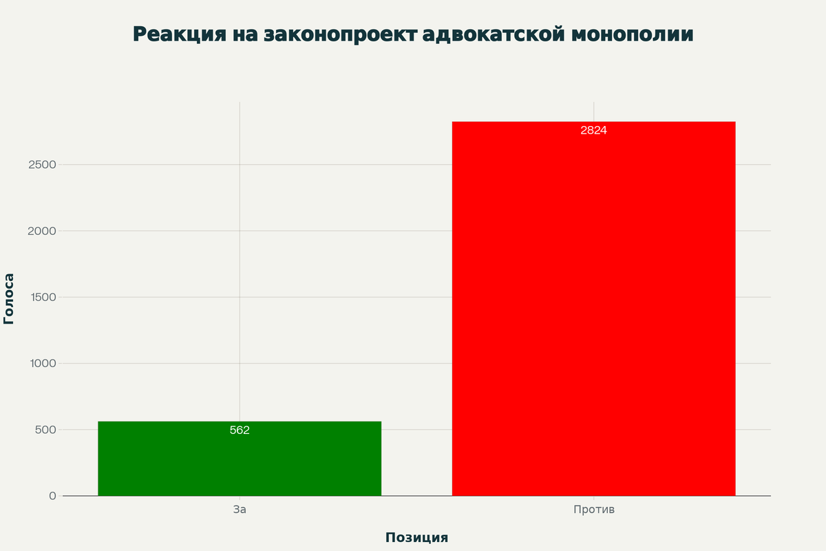 Результаты голосования на официальном портале regulation.gov.ru демонстрируют преимущественно негативную реакцию: против проголосовало 2824 участника, за — 562. Это свидетельствует о серьезных опасениях юридического сообщества относительно предлагаемых изменений.