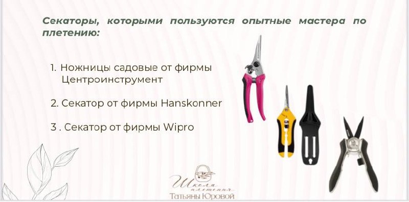 Подборка проверенных инструментов☺️ ✂️ Ножницы для рукоделия JACK https://www.wildberries.ru/catalog/152678288/detail.aspx?targetUrl=MS&size=255473929 ✂️ Ножницы садовый https://leroymerlin.ru/product/nozhnicy-sadovye-novasad-pryamye-82145047/ ✂️ Ножницы садовые Центроинструмент https://ozon.ru/t/dwL4LkG ✂️ Секатор Hansconner https://ozon.ru/t/nA3wz0d ✂️ Секатор для цветов Green Apple https://www.wildberries.ru/catalog/211415284/detail.aspx https://ozon.ru/t/lpN37kY Сохраняйте и пересылайте друзьям и знакомым, кому интересна тема плетения.