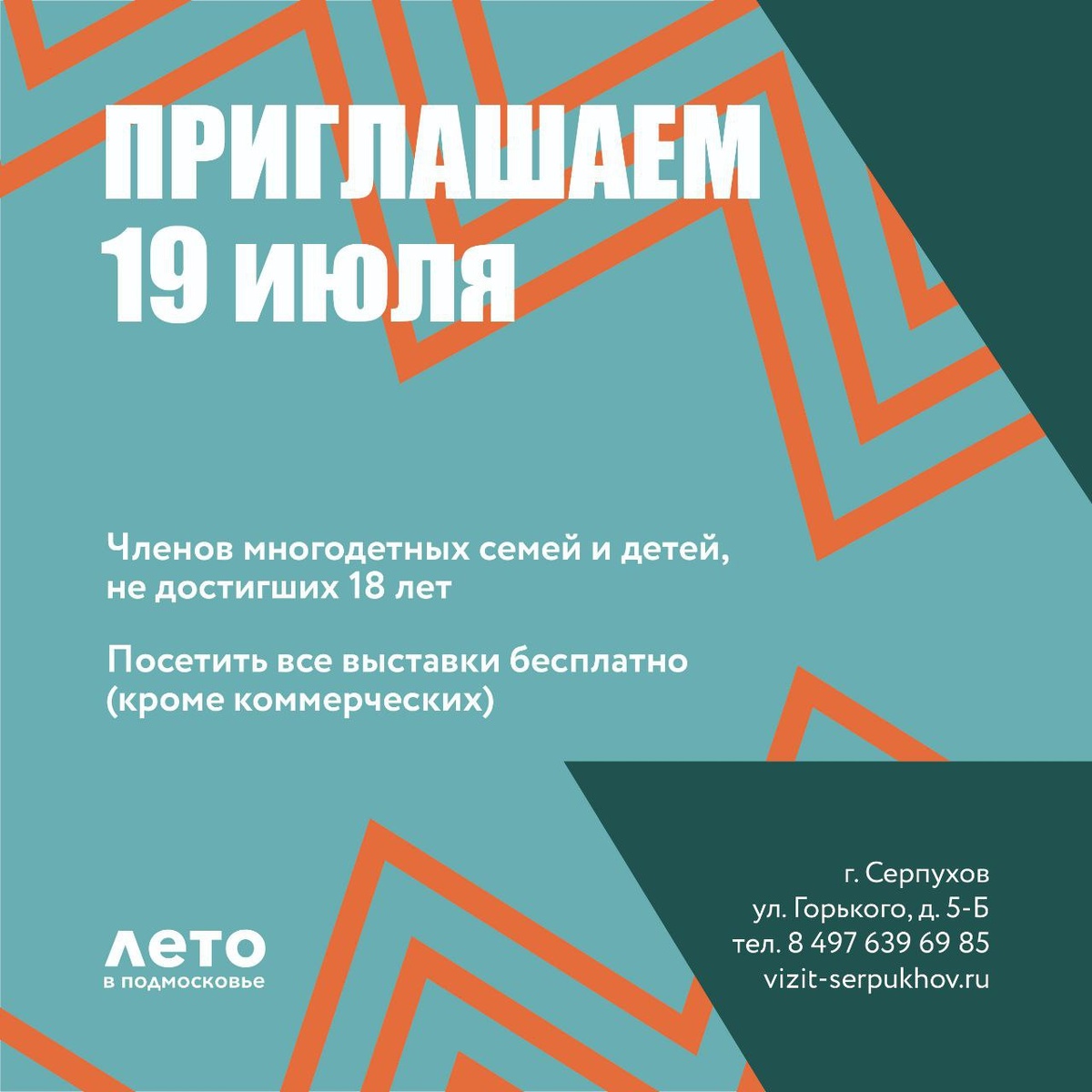 ✨ День бесплатного посещения для детей до 18 лет и членов многодетных семей❗ 🪪при предъявлении соответствующих документов. Что можно посмотреть? 💮 Постоянная экспозиция «Музей павлина» 💮 Постоянная экспозиция «Мир русской деревни» 💮 Выставка "Деревянные и расписные. Ноев ковчег" из коллекции А.В.Михайлова 💮 Выставка «Подмосковная сторона» Живопись, графика. 💮 Выставка «Границы мира». Фотовыставка участника СВО Никиты Зайцева. 💮 Выставка живописи Максима Аксёнова. 🟢 11.00 - экскурсия по выставке "Деревянные и расписные. Ноев ковчег " 🟢 12.00 - лекция "Полховский Майдан. История самого яркого промысла" 🚫 Возраст: 3+ 📆 19.07.2025 🏢 Музейно-выставочный центр 📍 г. Серпухов, ул. Горького, 5б 💰 Вход свободный❗️ #webСерпухов ⭐Разместить публикацию ⭐Поддержать канал голосом ✅ Мероприятия Серпухов https://dzen.ru/id/66f01c6eb4c6fe60c9ca1608 http://vk.com/serpukhov_events http://dzen.ru/serpukhov_events