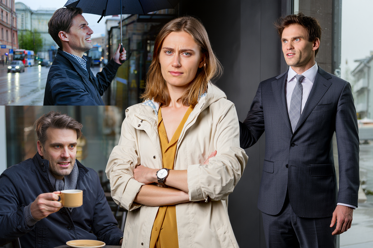 Я обернулась и увидела мужика — высокий такой, лет сорока, с серыми глазами и тёмными волосами, слегка растрёпанными. Симпатичный, но какой-то... правильный, что ли. Он стоял чуть в сторонке, и я его даже не заметила сначала.