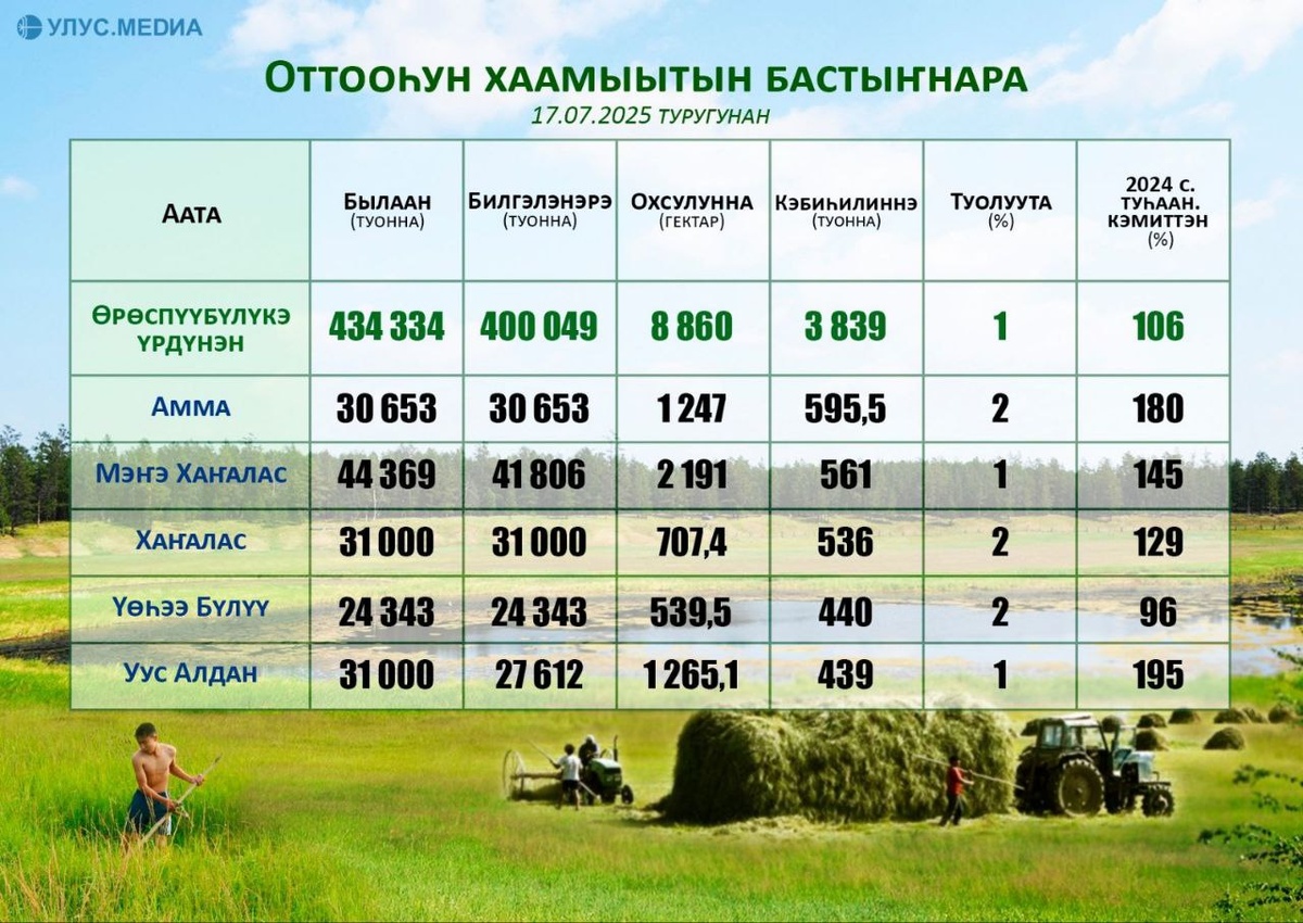 🗣Оттооһун хаамыыта: былаан 1 эрэ бырыһыана туолла эрээри, тэтим былырыыҥҥыттан ордук 🌾🚜 От ыйын иккис аҥаарыгар үктэннибит. Саха сирин ходуһаларыгар, от ыйын 17 күнүнээҕи туругунан, 3 839 туонна от турда. 📊 Бу сыыппараны хабаатыннардахха, быйылгы былааннаммыт кээмэй 1 бырыһыаныгар тэҥ. Мыыныахха сөп эрээри, былырыын сайын баччаҕа кэбиһиллибиттэн 6 бырыһыанынан ордук. Онон, этэргэ дылы, ахсаан саҕаланна. Сиһилии 👈 @ulusmedia