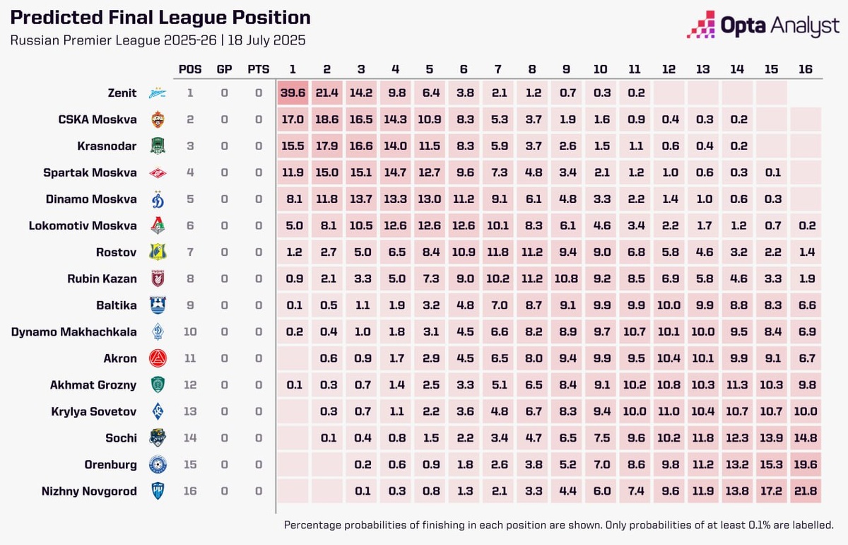 Рубин по итогам сезона будет на 8 месте - Opta ❤️ Злобный Рубин ❤️