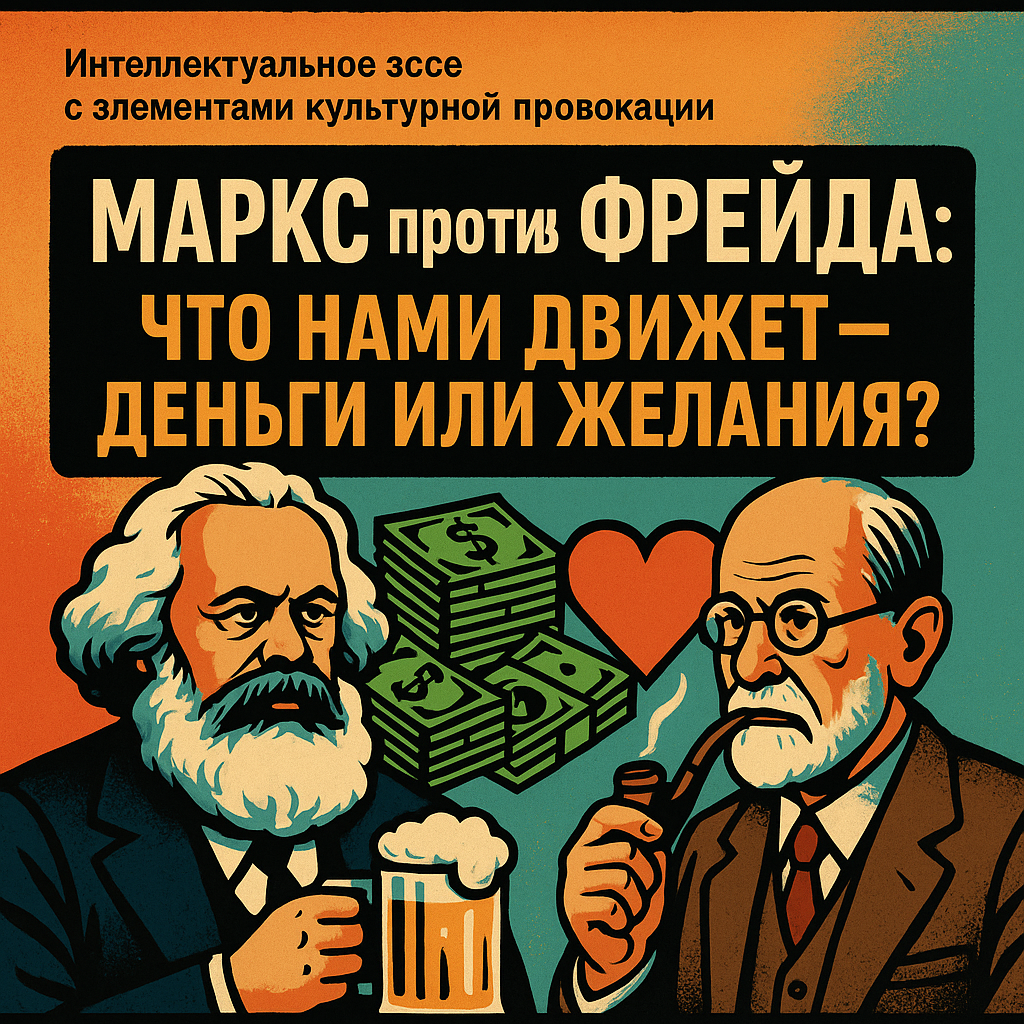 Представьте себе бар, где за соседними столиками сидят Карл Маркс и Зигмунд Фрейд. Маркс заказывает пролетарское пиво и бурчит что-то про эксплуатацию рабочего класса. Фрейд потягивает венский кофе и записывает в блокнот свои наблюдения о том, как бармен подсознательно флиртует с официанткой. Оба считают, что разгадали главную тайну человечества. Оба уверены, что знают, что нами движет.