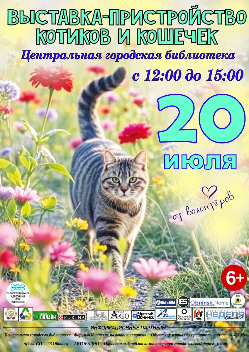 🐱20 июля с 12:00 до 15:00 в Центральной библиотеке в Обнинске пройдёт выставка-пристройство кошек и котят от волонтёров. Вход свободный. Обнинск, ул. Энгельса, 14. 👍 Подписаться | Ваша реклама