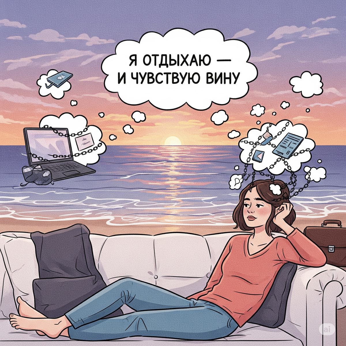 Ты решаешь устроить себе выходной. Всё — без дел, без «нужно». Просто тишина, фильм, прогулка. И вдруг... появляется оно — чувство вины.