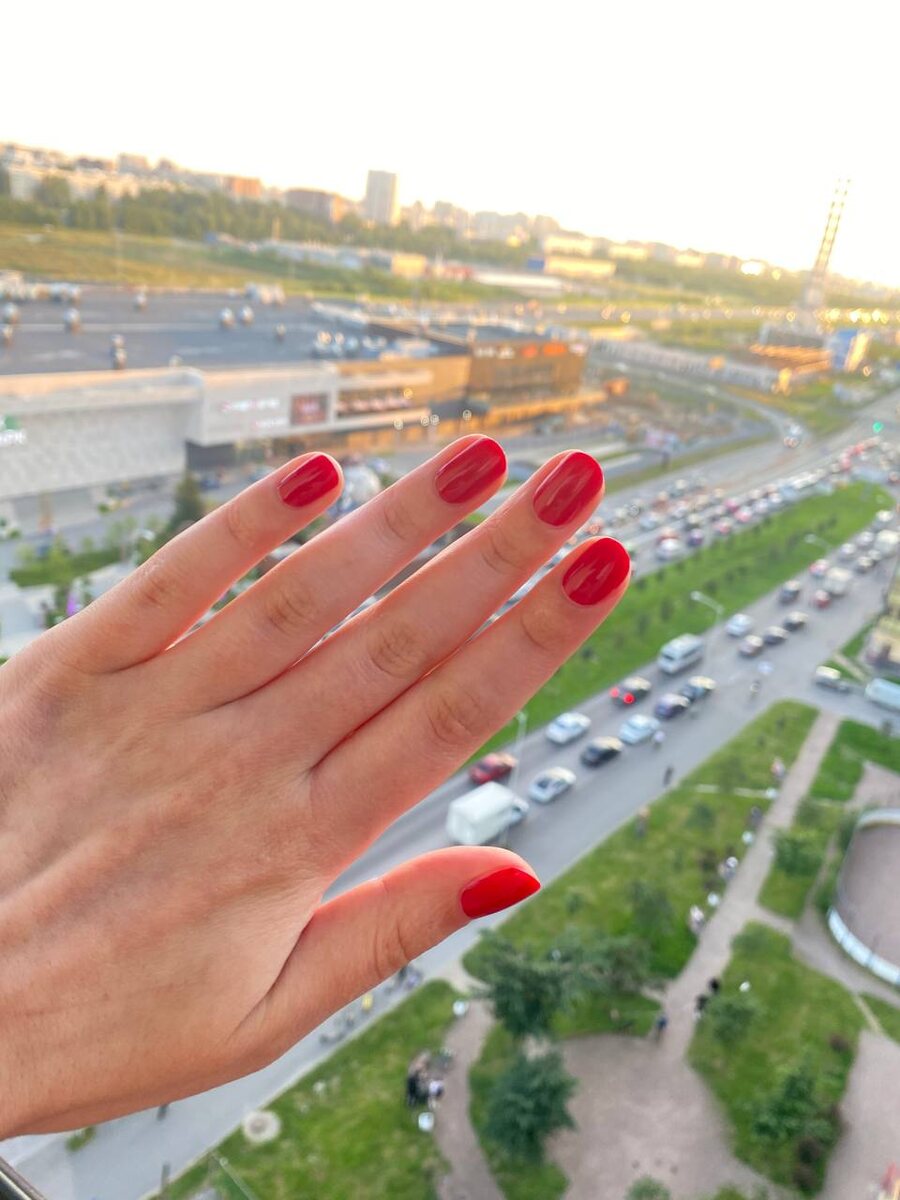 Девочки, всем привет) насмотрелась на вас, решила тоже красный бахнуть, давно ждал меня)) фирма эстель, должен долго проноситься, по крайней мере розовый носился отлично)) цвет плотный, хорошо выравнивается, сохнет говорят долго, поэтому сразу ждала подольше 🤪 В жизни цвет темнее и насыщеннее 😍
