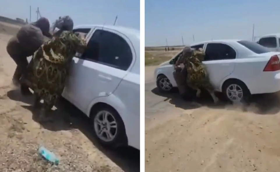 В Кашкадарье троих человек протащили по дороге — странный инцидент попал на видео