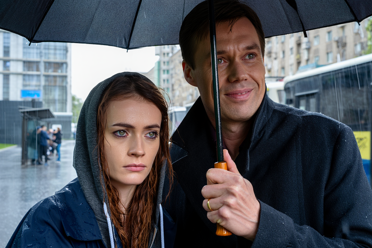 Подняла глаза – рядом стоит высокий, представительный мужчина в тёмно-сером пальто. Глаза внимательные, карие. В руках – большущий чёрный зонт.