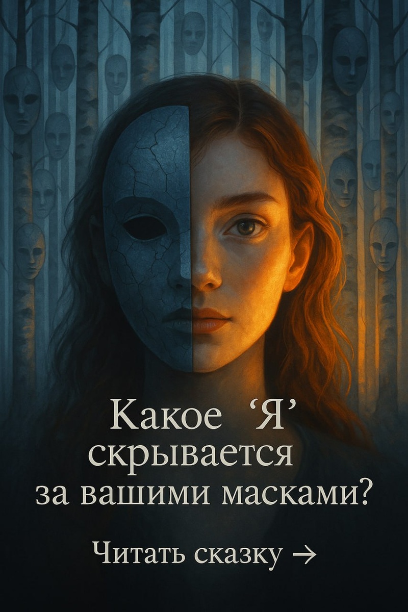 🌲 Сказка "Зеркальный лес" В далеком королевстве, где тени были длиннее домов, а дороги вились как змеи, рос необычный лес. Деревья там были из чистого зеркала, и называли это место Зеркальным лесом. Жила в том королевстве девушка по имени Лира. Каждое утро она смотрела в зеркало и спрашивала: — Кто я на самом деле? Но вместо ответа видела лишь отражение — то уставшее, то натянуто-улыбающееся, то вовсе чужое. 🌑 Часть 1: Тропа Масок Однажды Лира решила войти в Зеркальный лес. С первого шага стволы деревьев начали шептать голосами тех, кем она пыталась быть: "Ты должна быть удобной", — звенело одно зеркало. "Ты недостаточно хороша", — гудело другое. "Бойся, не рискуй", — шипело третье. Лира бежала по тропе, но чем дальше, тем тяжелее становилось. Маски прилипали к ее лицу, как паутина. 🌘 Часть 2: Ручей Слез Когда силы покинули ее, Лира упала на колени у ручья. Вода в нем была соленой — будто сотни людей плакали здесь. — Почему я не могу найти себя? — спросила она у старичка-о