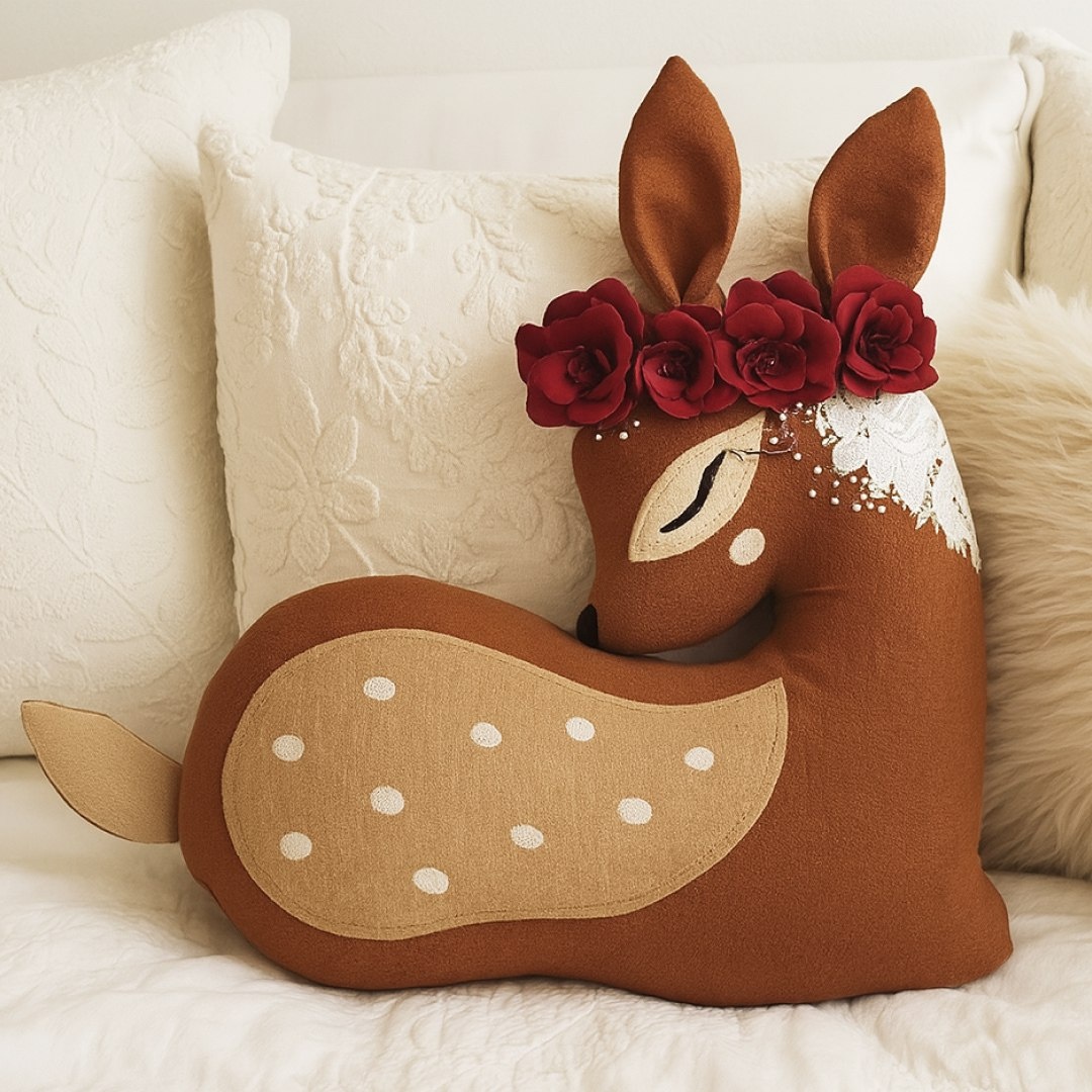 Эта милая декоративная подушка в виде спящего оленёнка украсит диван, детскую кроватку или уютный уголок в мастерской 🦌