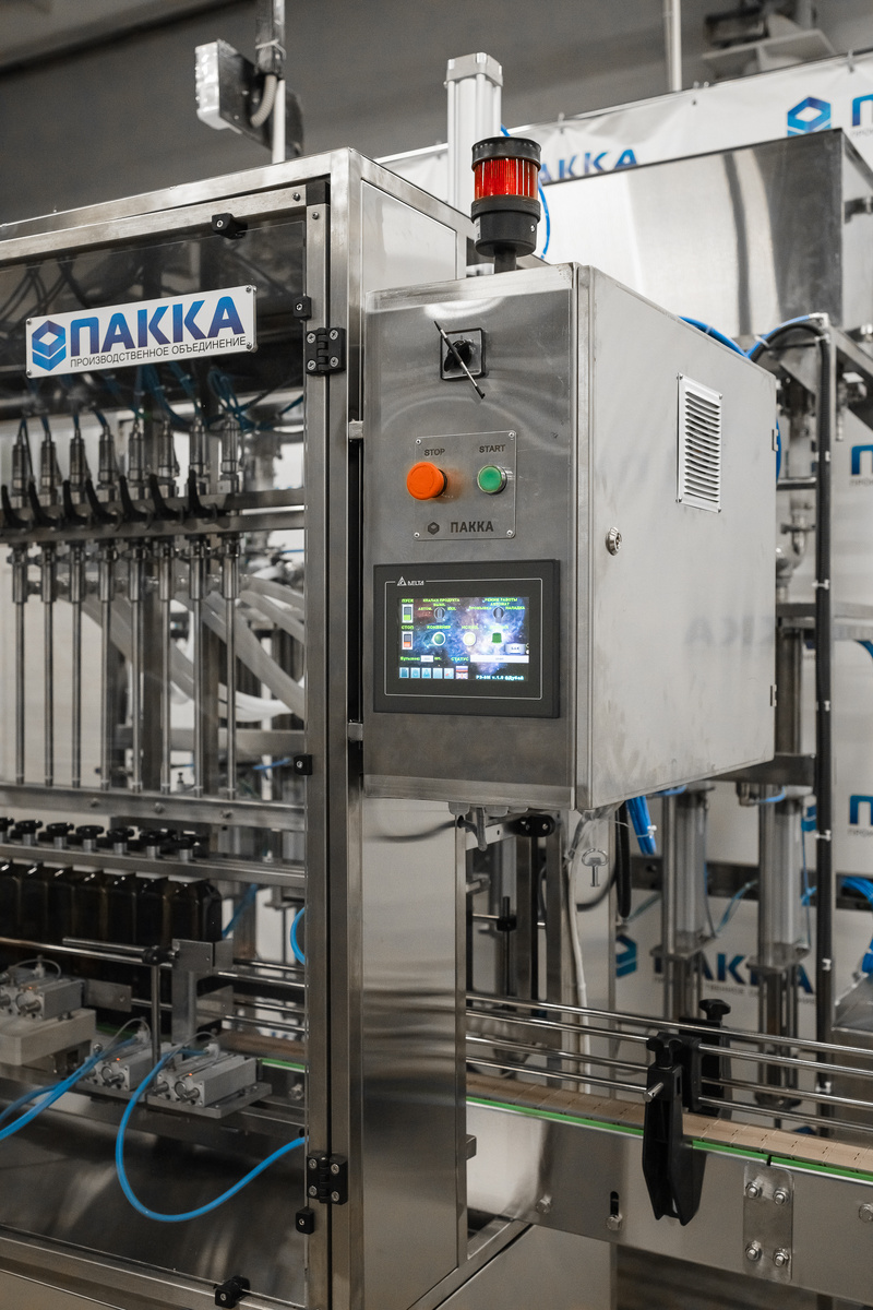 Российский производитель выводит на рынок ОАЭ несколько видов растительного масла, которые считаются премиальными продуктами в арабских странах. Продукты будут разливать в 3 вида бутылок и наклеивать несколько видов этикеток, поэтому нужна большая вариативность настройки этикетировки и всей линии. Заказчик выбрал завод «ПАККА» как производителя оборудования для розлива растительных масел, положительно зарекомендовавшего себя на рынке. Перед нами поставили задачи: Инженеры завода «ПАККА» проработали ТЗ заказчика. Изначально рассматривали полуавтоматические линии. Однако мы определили, что производительность такого оборудования не позволит выпускать необходимые объемы продукции и затраты на производство будут выше. Было решено изготавливать автоматические линии. В состав оборудования включили: Для обслуживания каждой линии достаточно двух операторов. Переналадка на другой вид тары занимает менее часа. Мы согласовали с заказчиком варианты тары и изготовили две линии для розлива растительн