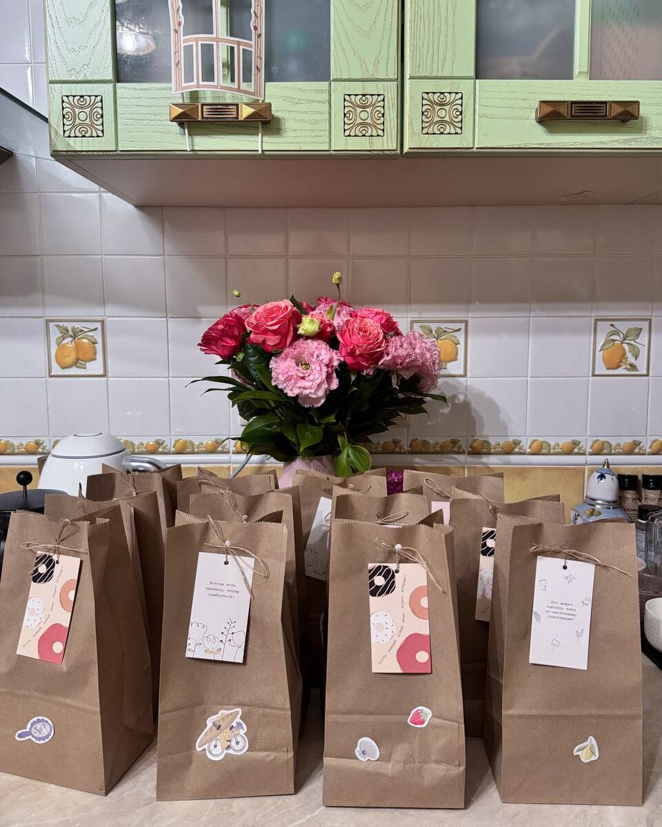 Подарки маленьким гостям 🎁 Распаковку подарков сделаю тоже, а пока про подарки для гостей. Крафт-пакетики с бирками Там 30 штук, хватило и гостям на празднике и в садик деткам отнести. Наклейки для украшения я честно поскребла по сусекам дома и отдельно не покупала. На праздник в саду Алёна выбрала аниматора трицератопса, поэтому и подарки я деткам сделала тематическими 🦕 В каждый пакетик я положила яйцо с раскопками из набора и отдельно положила детям палочки чтобы было удобно ковырять. Также каждому малышу положила листик наклеек с динозаврами и фруктовую пастилу, просто купила большую упаковку и разложила по пакетикам детям. На основном празднике уже вместо динозавров я сложила детям брелоки с лабубу, все ту же фруктовую пастилу и мыльные пузыри. Пузыри просто ящик взяла и разложила. Мне безумно нравится эта традиция делать маленькие сюрпризы гостям на празднике. Причём собирали мы их вместе с Алёной и украшала пакетики она сама.