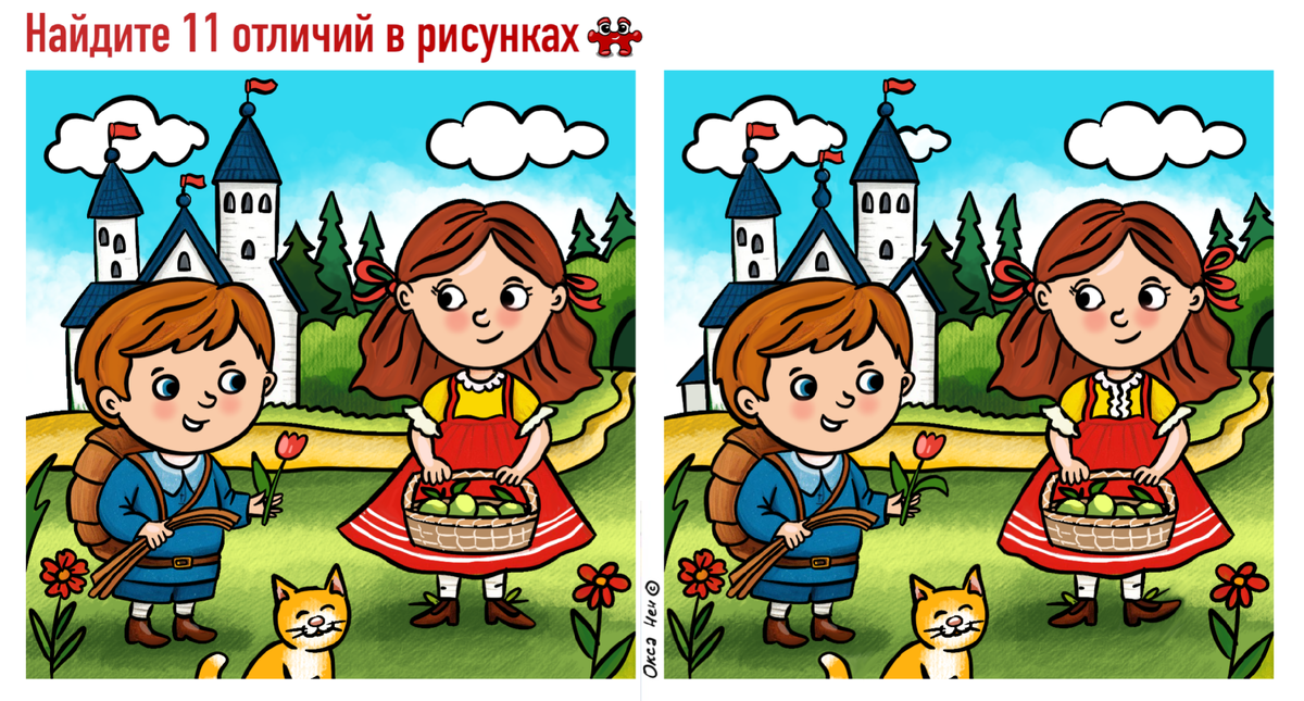 11 отличий на сказочных картинках. Тест памяти и внимания для всей семьи.