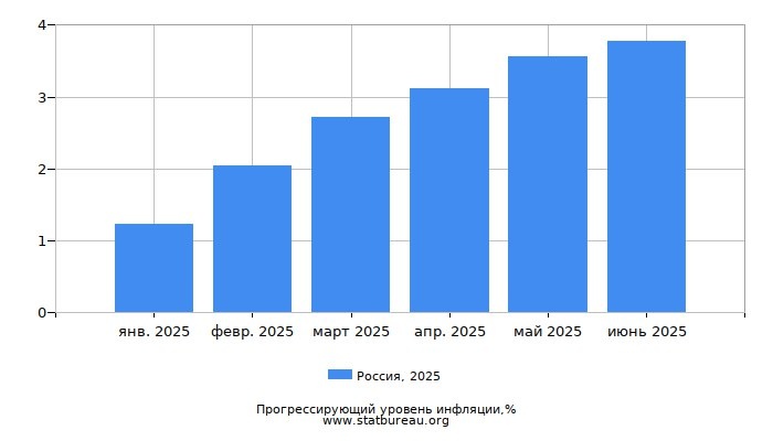 В годовом выражении, по расчетам, основанным на среднесуточных данных за аналогичные периоды 2024 и 2025 годов, инфляция по состоянию на 14 июля составила 9,4%.