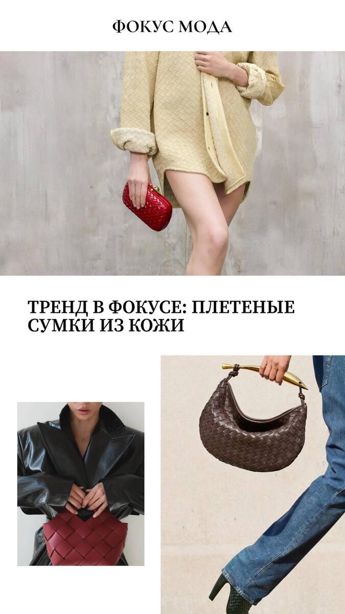 Фактуры говорят громче логотипов — особенно если это плетёная кожа. В новом материале «Фокус Мода» разбираемся, как техника Intrecciato от Bottega Veneta стала культовой, почему сумки Dragon Diffusion заняли топовые позиции в рейтингах, и у каких российских брендов искать достойные альтернативы. От аксессуаров с историей до новых локальных моделей — рассказываем, как вписать плетёную сумку в городской или пляжный образ и какие цвета будут работать на ваш стиль. Универсальность, прочность и тактильная эстетика — всё, за что мы любим этот тренд. Читать статью на сайте focusmoda.ru #ФокусМода_тренды