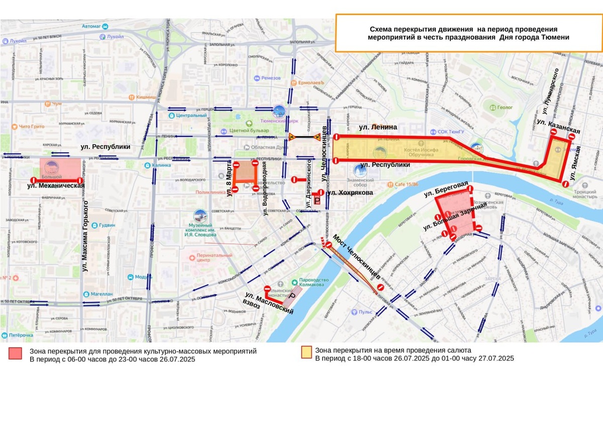 Перекрытие дорог в День города Департамент дорожной инфраструктуры и транспорта сообщает, что в связи с подготовкой и проведением культурно-массовых мероприятий в честь Дня города Тюмени планируется прекращение движения транспортных средств по следующим автомобильным дорогам. Подробно здесь.