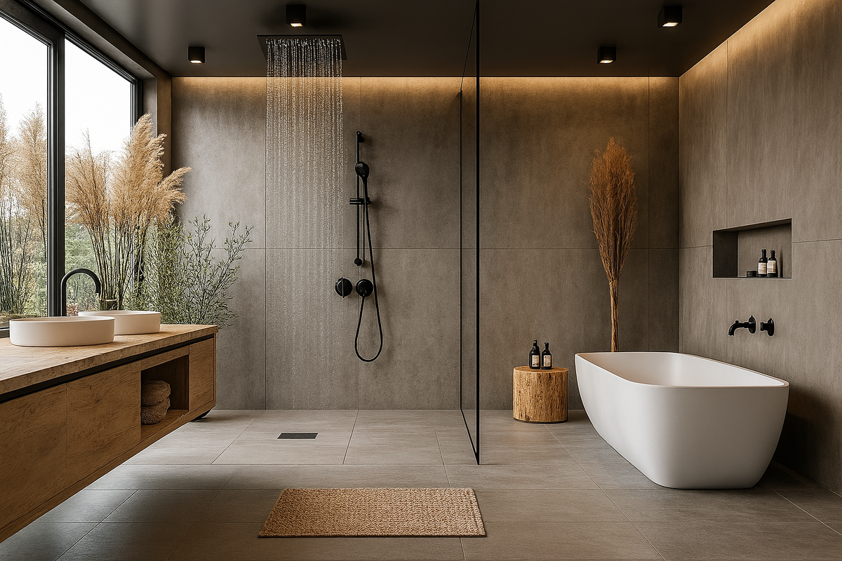 Безбордюрный душ идеально вписывается практически в любой современный интерьер, например: минимализм, скандинавский стиль, лофт или даже тихую роскошь. Пол, покрытый единой плиткой, всегда выглядит элегантно и аккуратно.