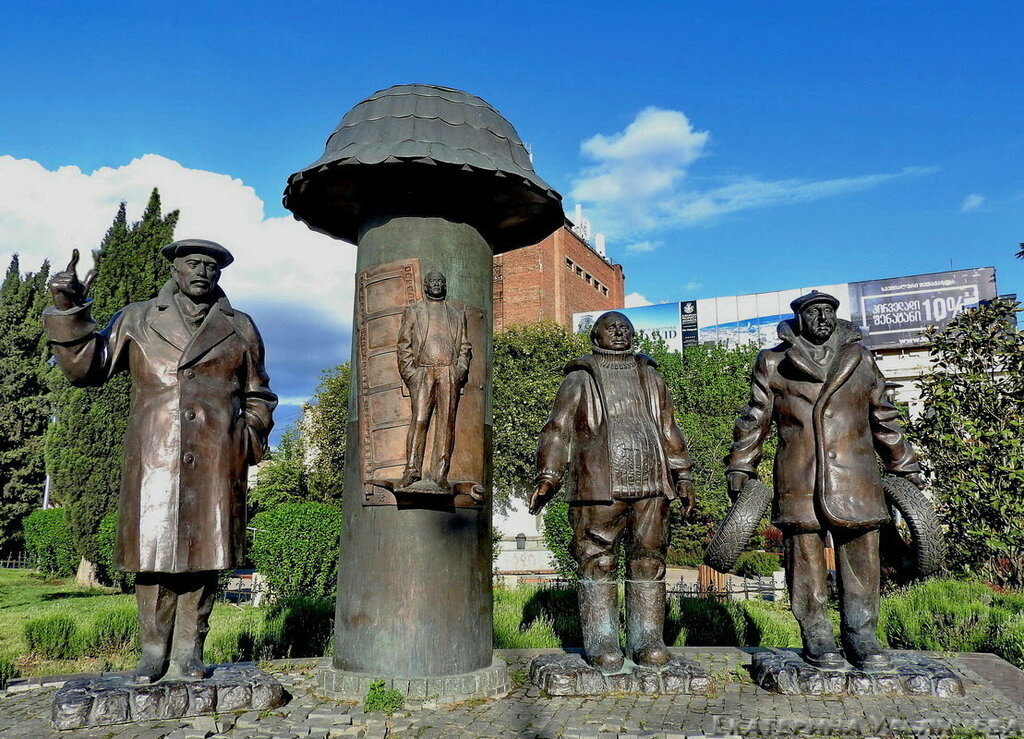 На Авлабаре, в одном из самых колоритных районов Тбилиси, неподалёку от станции метро и оживлённой площади, стоит памятник, который невозможно пройти мимо — это скульптурная композиция, посвящённая героям культового советского фильма «Мимино». Памятник давно стал любимым местом как для туристов, так и для местных жителей, ведь в нём — частица той самой доброй, тёплой и немного наивной эпохи. Памятник изображает главных героев фильма «Мимино» Кикабидзе, Мкртчяна и Леонова, а также самого режиссера Данелия. Фильм «Мимино» (1977), снятый Георгием Данелия, — это комедия с нотками лирики и философии, ставшая классикой советского кинематографа. Главный герой — грузинский пилот Валико Мизандари, прозванный Мимино, мечтает летать на международных авиалиниях, но с трудом находит своё место между родным горным селом и суетной Москвой. Фильм запомнился не только блестящей игрой актёров, но и фирменным юмором, великолепной музыкой и живыми диалогами, многие из которых стали крылатыми фразами. Памя