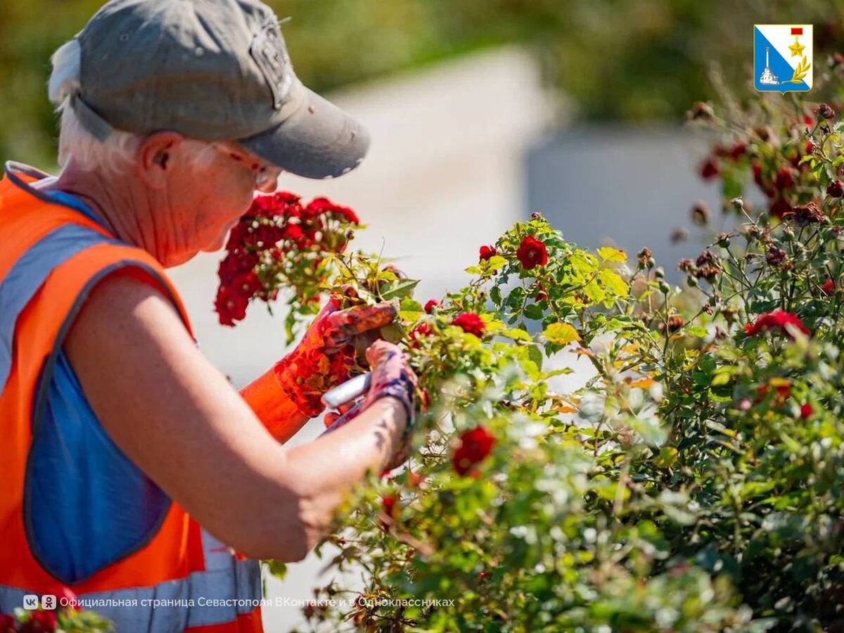 Готовимся ко второму цветению Специалисты «Парков и скверов» ухаживают за розами в сквере памятника «У памятника 100-летия окончания Гражданской войны на Юге России». 🍂После первого цветения растениям требуется особое внимание: нужно обрезать увядшие бутоны, прополоть и подкормить кусты. Всего более 10 000 роз на более чем 80 пространствах. Правительство Севастополя