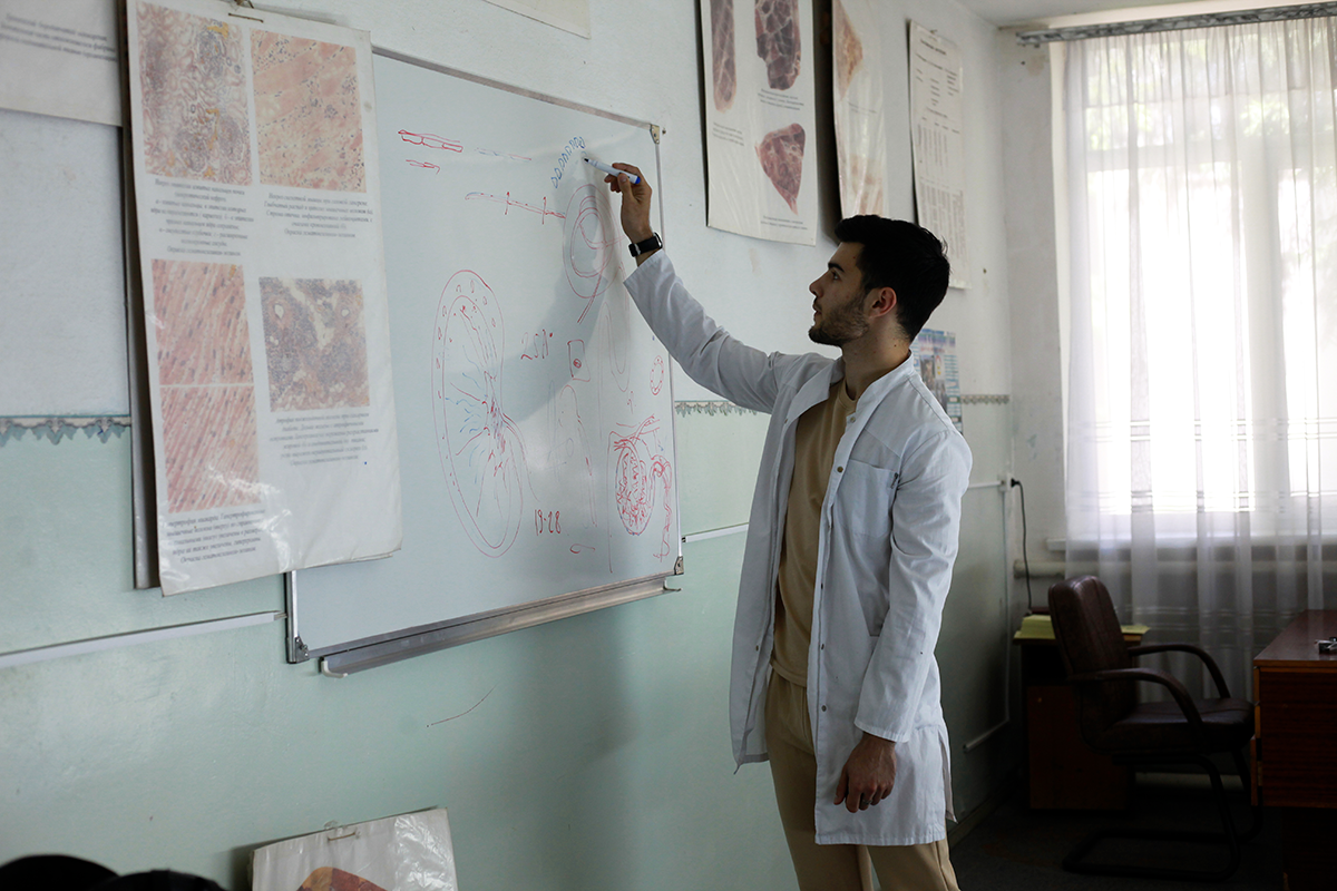 — Мой научный руководитель Сослан Козырев предложил мне вместе с другими изучать птиц. Нужно было приходить по выходным на факультативы. Мы исследовали под микроскопом кровь птиц, считывали эритроциты. Это оказалось очень интересно, даже азартно, — вспоминает Алан. Скоро из десяти студентов он остался единственным. Вместе с наставником они реализовали первый удачный проект — адаптировали к жизни в Северной Осетии кур из Англии и Франции.
