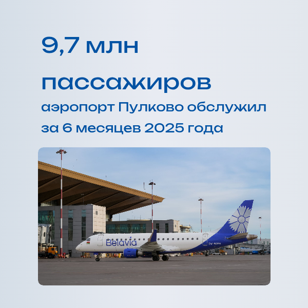 9,7 млн пассажиров обслужил Пулково за 6 месяцев 2025 года ✈️