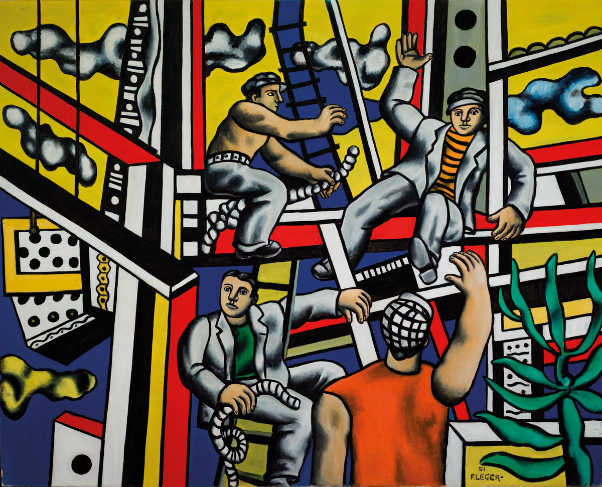 Фернан Леже. Строители (Строители с алоэ). 1951. Картина находится в постоянной экспозиции Галереи искусства стран Европы и Америки XIX-XX века.