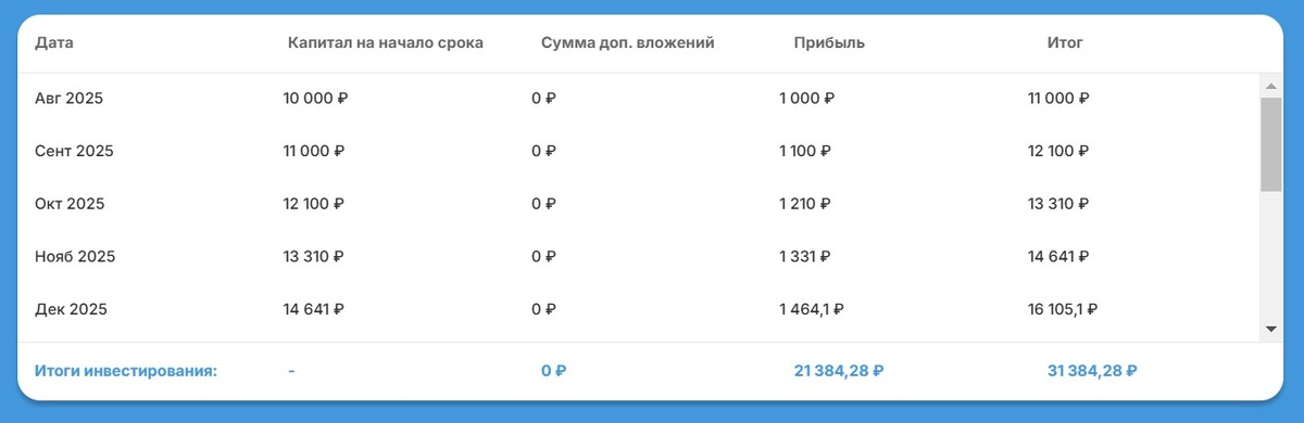 Представьте, что вы кладёте деньги в копилку, и они не просто лежат там, а сами по себе «размножаются». День за днём, месяц за месяцем они приносят доход — и этот доход тоже начинает приносить доход. Это не магия, а сложный процент. Именно он делает богатых ещё богаче, а начинающим инвесторам открывает путь к свободе — даже если на старте у вас всего 10 000 рублей. Сложный процент — это когда вы получаете доход не только с вложенных средств, но и с уже полученной прибыли. Например: С каждым циклом ваша прибыль растёт экспоненциально, даже если доходность остаётся стабильной. Это как снежный ком, который катится вниз по склону — он набирает вес и скорость без вашего участия. Именно поэтому сложный процент — это основа пассивного дохода. Даже маленькие суммы при правильной стратегии и времени дают ощутимый результат. Теперь представьте, что вы подключаете торгового робота, который стабильно приносит от 5 до 20%
