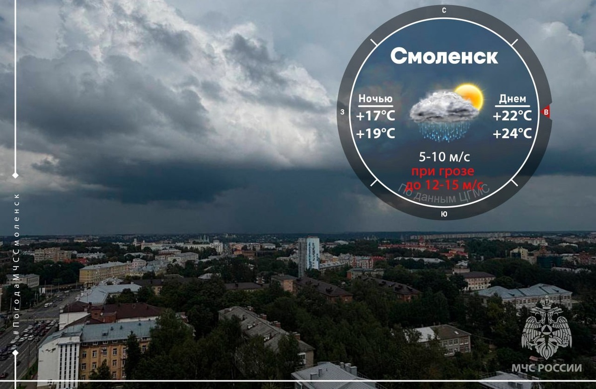 ⛈Дождь, гроза, туман и ветер: чего ждать от погоды в субботу Завтра, 19 июля, на Смоленщине будет облачно с прояснениями. Ночью пройдёт небольшой кратковременный дождь, днём на большей части территории осадки будут частыми и непродолжительными. Днём местами возможна гроза, ночью и утром в отдельных районах — туман. Ветер подует восточный со скоростью 5-10 м/с, а днём при грозе порывы будут достигать до 12-15 м/с. Атмосферное давление составит 738 мм рт. ст., и будет ещё слабо падать. 🌡Температура воздуха: по области: ночью +14…+19°C, днём +21…+26°C, в Смоленске: ночью +17…+19°C, днём +22…+24°C. 📌Сразу несколько опасных погодных явлений обрушатся в субботний день на Смоленщину. Вспомним вместе правила безопасности! При тумане: ☑️на дорогах будь предельно внимательным, ☑️носи на одежде светоотражающие элементы, ☑️внимательно переходи проезжую часть — только по пешеходному переходу, ☑️за рулём соблюдай скоростной режим и дистанцию, ☑️сбрасывай скорость, приближаясь к населённым пунк