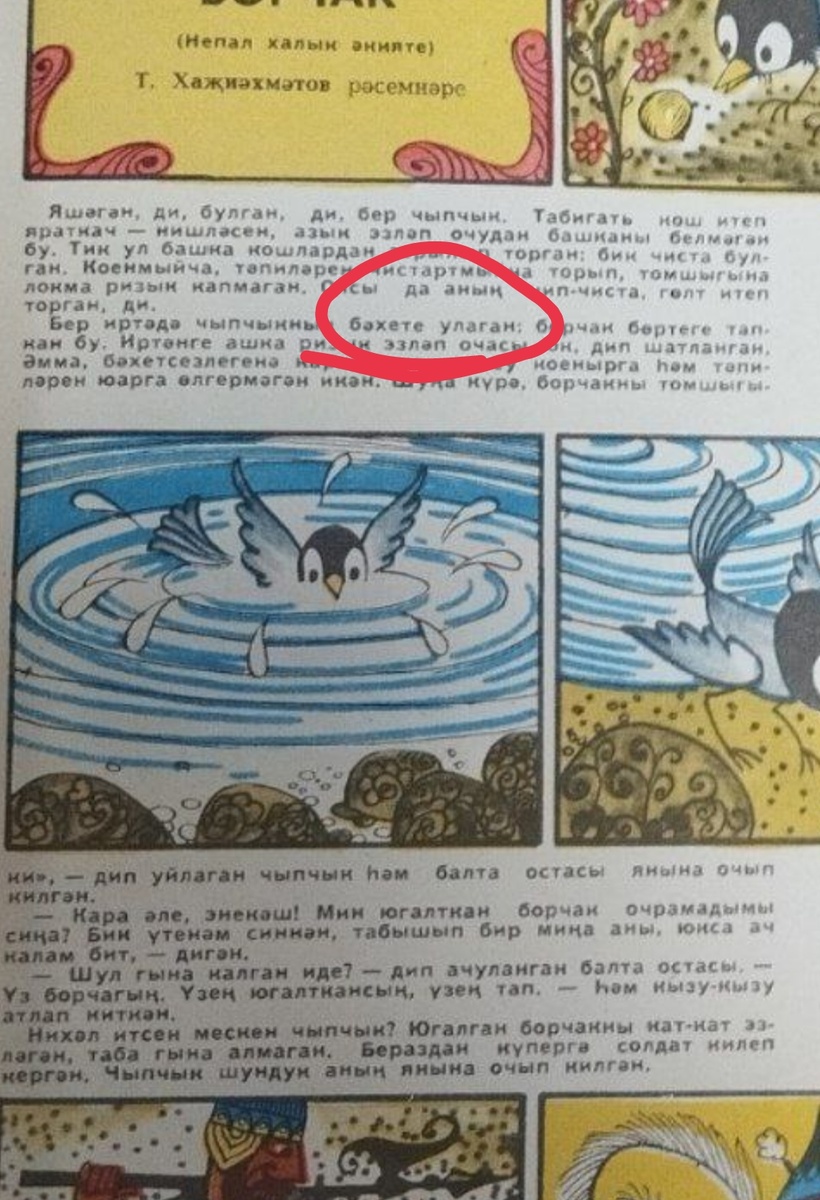 Интересное словосочетание вылезло в татарском переводе непальской сказки. Фраза "В одно утро выпало воробью счастье" на татарском тут была как