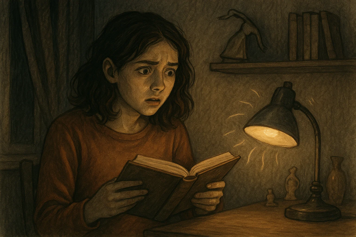 Недавно произошёл ещё один случай, который меня напугал. Я сидела в своей комнате и читала книгу. Вдруг лампа на столе начала мигать, хотя я её только что заменила. Я встала, чтобы проверить провод, но всё было в порядке. Когда я вернулась к книге, страница, на которой я остановилась, была перевёрнута, а на полке рядом упала маленькая статуэтка, которую я не трогала годами. Я попыталась убедить себя, что это случайность, но в глубине души знала, что это не так.