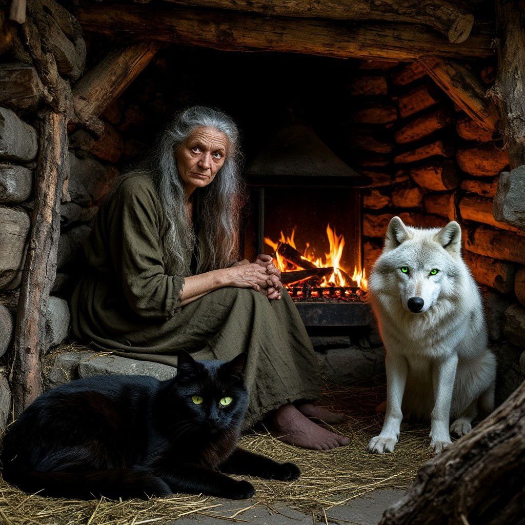 🌿 #ОхотаНаДревнюю Лес встретил охотников гробовой тишиной. Собаки жались к ногам, будто земля под ними была живой. Ярослав, боярский сын, въехал в чащу первым — и тут его конь встал на дыбы, словно узрев незримого владыку, и сбросил седока прямо на переплетённые корни, похожие на скрюченные пальцы. Очнулся он в избе, где пахло сушёной полынью и медвежьей шкурой. На печи восседала Древняя — глаза как смоляные ямы, волосы — седой мох. У ног её свернулся кот с перевёрнутыми суставами, а в углу светились зёленые глаза белой волчицы. — Три загадки отгадаешь — уйдёшь, — проскрипела Древняя, поглаживая кота. — Не отгадаешь — станешь следующим. Первая загадка прозвучала, как шелест сухих листьев: — Что бежит по моему полу, но следов не оставляет? Вторая — будто скрип замшелого пня: — Почему волчица воет, но своего голоса не слышит? Третья — холодным дыханием могилы: — Что я держу в руке — живое и мёртвое сразу? Ярослав посмотрел на волчицу — и вдруг вспомнил. Детский сон: белоснежный з
