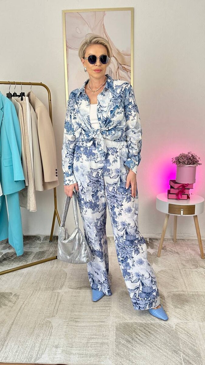 Еще один вариант и для дома, и для улицы, тут как вам больше нравится. Укороченная рубашка с перьями и широкие брюки на резинке. Если белый цвет вам кажется слишком марким, есть еще черный.