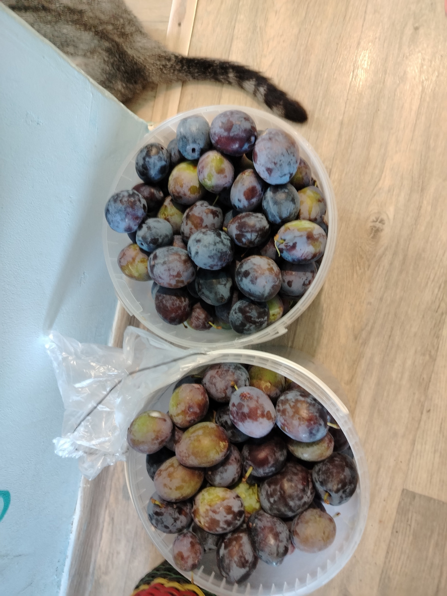 Любите ткемали? Я да! Вы знаете, первый раз я попробовала ткемали в дошкольном возрасте. Посещая детский сад, как и всех детей, у меня были друзья. Мы с Ольгой настолько сдружились, что наши маменьки начали общаться, и мы были частые гости друг у друга. И вот однажды в гостях у Яиковых тётя Наташа угостила ткемали. Это было настолько вкусно… Что воспоминания хранятся до сих пор. И вот прошло уже около 30 лет, я созрела для ткемали собственного приготовления. Тем более и повод есть. Меня угостили сливой: Слива очень вкусная, но есть и уже спелая, и зелененькая. Вспоминая слова тёти Наташи, что ткемали делается из недозрелой сливы, я начала искать рецепты в интернете. Но тут как-то не срослось: то нужных специй дома не было или продуктов, то рецепт сильно калорийный. В общем, я решила, что готовлю я съедобно, пока ещё в больницу никто не попал. Значит, сотворим по ходу. Сливу порезала, естественно косточки убрала. Помидорки почикала. И все в комбайн. После этого поставила томиться на ог