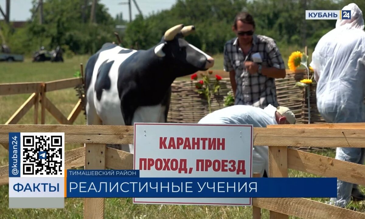 Видео канала «Кубань 24» По сценарию, в станице Новокорсунской Тимашевского района поступил вызов о погибшей овце. Перед этим у животного были признаки опасного заболевания — ящура. По отработанному алгоритму действий на территории установили ветеринарно-санитарный пост. «Даже под палящим солнцем специалисты в защитных костюмах оперативно организовали карантинную зону вокруг погибшего животного. После этого труп обследуют и берут анализ», — сообщает корреспондент телеканала «Кубань 24» Ксения Возжанникова. Если результат положительный, животное нужно утилизировать. С помощью трактора его загружают машину для кремирования. Важно не допустить распространения инфекции, поэтому после сжигания все тщательно дезинфицируют. «Для дезинфекции используются современные эффективные дезинфицирующие средства: хлорамин, арбицит, глутоцит в соответствующих концентрациях. Эти препараты имеют необходимые сертификаты соответствия», — говорит начальник отдела организации противоэпизоотических мероприятий