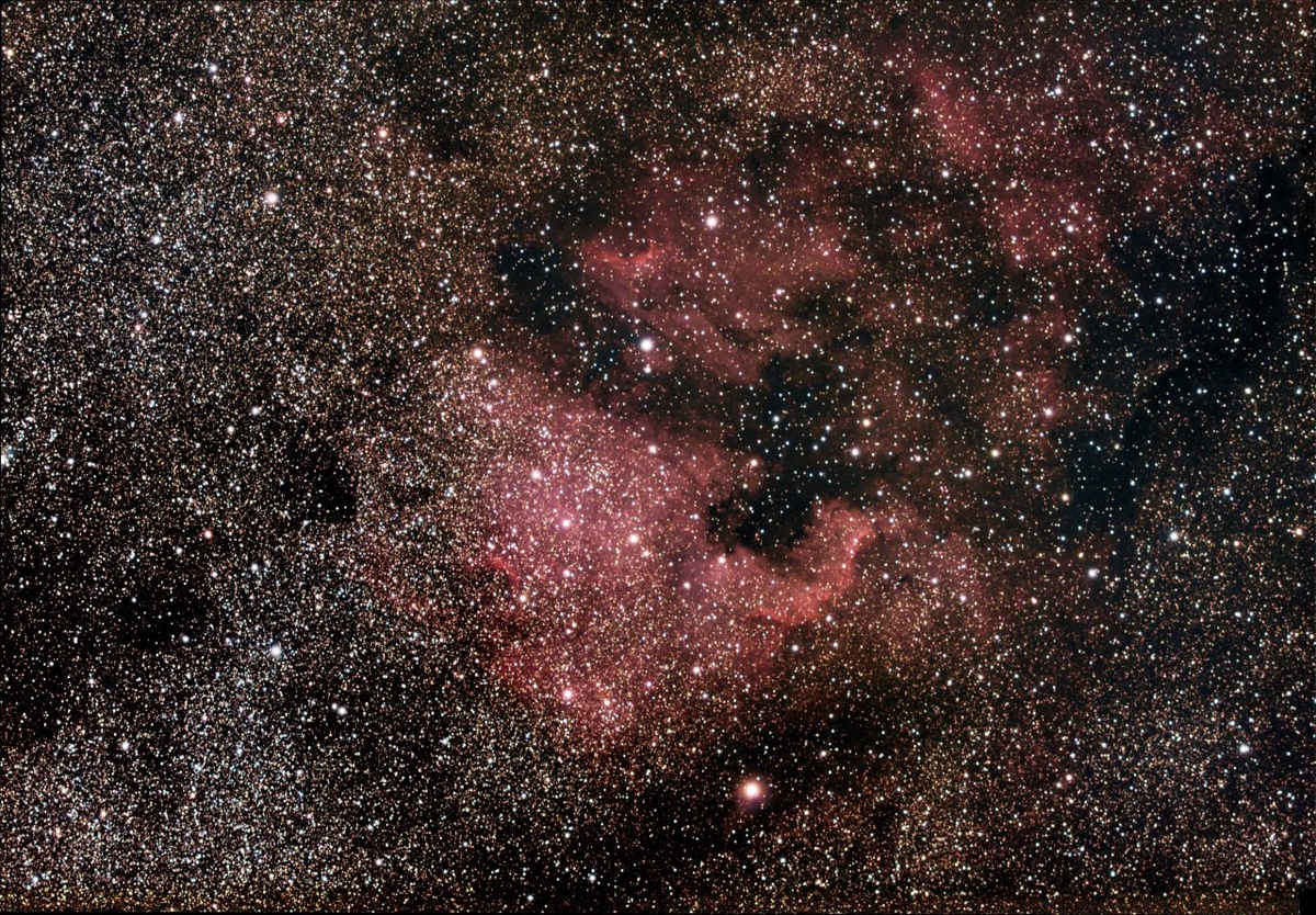 Приветствую самых терпеливых и верных подписчиков, спасибо верили и ждали ... фотографий небесных сокровищ.И вот он пришел новый сезон астрофото 2й половины 2025, ночи еще не совсем темные, но в зеленой зоне уже виден Млечный путь, самое время для проб и тестов оборудования и в этот раз объектом съемке стала популярная "попсовая" туманность NGC7000 Северная Америка и Космозавр IC 5070 Телескоп: Рефрактор Askar180/4.5 Камера: ZWO 294 pro, Монтировка: Star Adventure Телескоп-гид: нет Съёмка: ZWO ASIAIR Pro Cъемка 17.07.2025 г. 55 кадров х 120 сек gain 117 t-10C Софт: APP, PHs Camera Raw Зона засветки: Зеленая (полнолуние) Калибровочные кадры (Дарки, Флеты) в наличии ЗЫ файл без сжатия положу в комментарии 😉 ЗЫ только сейчас понял что снимал без UV/IR-cut и почему такой странный цвет у звезд 🙈 #Астрофото