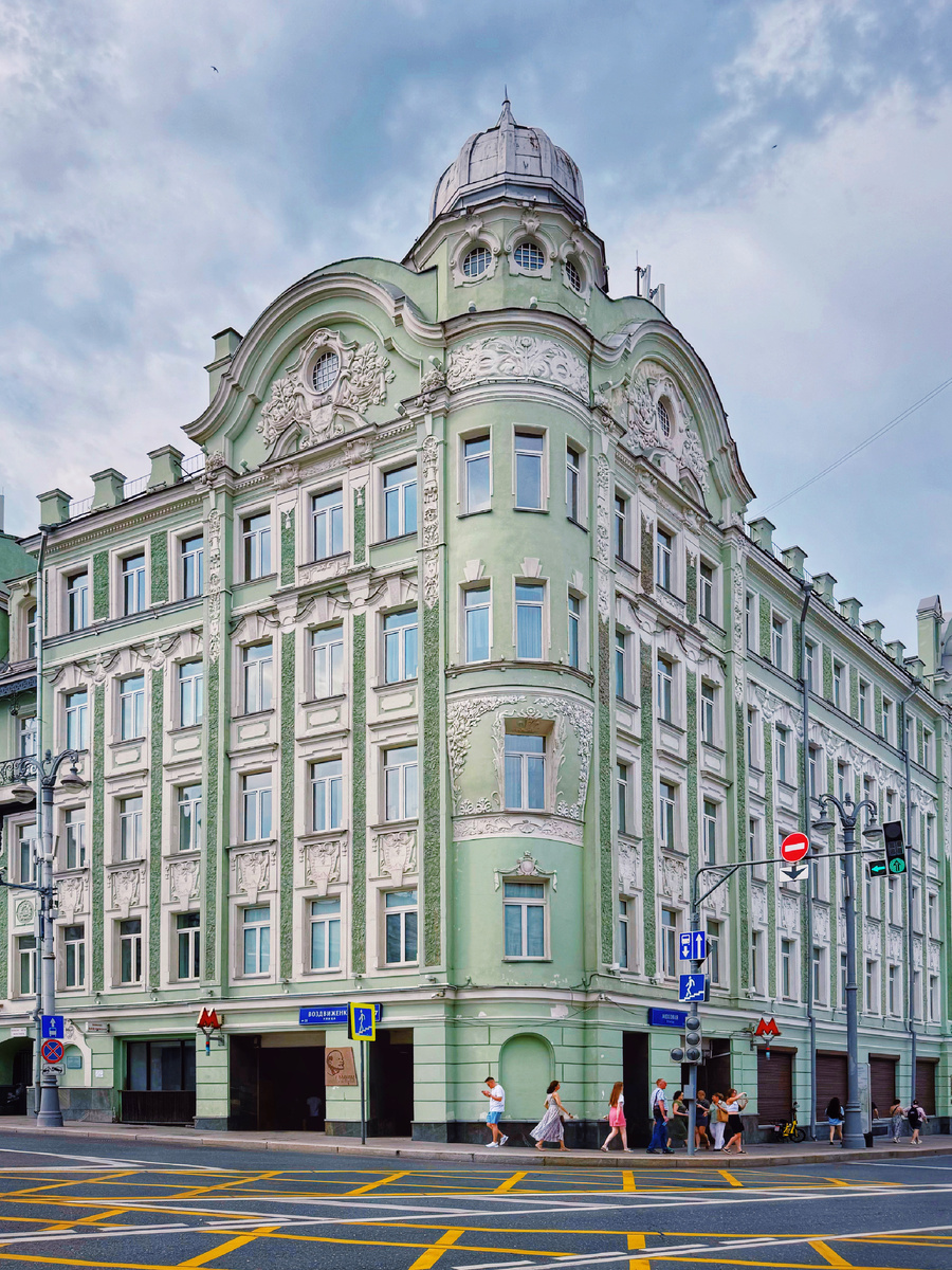 В середине 17-го столетия на том месте, где теперь стоит красивое зелёное пятиэтажное здание бывшей гостиницы «Петергоф», были расположены две небольшие городские усадьбы, принадлежавшие боярам Григорию Гавриловичу и Борису Григорьевичу Пушкиным, которые приходились друг другу двоюродными братьями. Борис Григорьевич был воеводой, Григорий Гаврилович - оружничим (т.е. ведал царской оружейной казной). В 1763-м году их владения соединили в одно, хозяином которого стал генерал-поручик Александр Артемьевич Загряжский. У супругов Загряжских было пятеро сыновей и две дочери. Один из сыновей (Иван) - это дед Натальи Николаевны Гончаровой, жены Александра Сергеевича Пушкина. В 1786-м году владение Загряжских приобрел купец Петр Михайлович Гусятников. Он был очень богатым именитым гражданином. Именитые граждане — это сословная группа городского населения в Российской империи, члены которой были свободны от телесного наказания, им дозволялось иметь загородные дворы, ездить в карете, заводить и с
