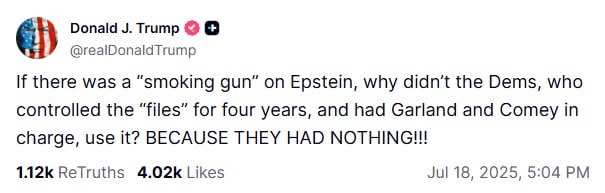 Trump challenges Epstein narrative: 'If there was a smoking gun, why didn’t the Dems use it?' Does this suggest there’s nothing to uncover — or were they silent because they were complicit?