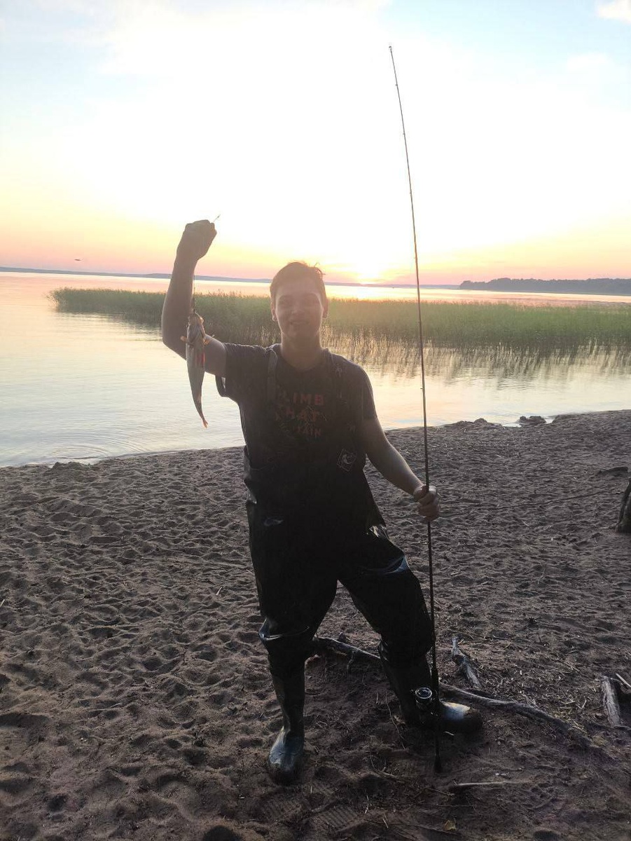 🔥 16.07.25🔥 📍 Выборгский район 🌊 оз. Глубокое 🎣 Спиннинг Я решился в 21 час съездить на минут 40 покидать спиннинг у камыша, прям как чувствовал) Вообще для меня вертушка это не та снасть которую я бы ставил во время рыбалки, но поклевок почти не было (только 1 раз на пчелу, фотку тоже прикреплю и по-моему это был именно этот же окунь, увидел лишь хвост после чего он ударил хвостом и сорвался) Ну и уходя с рыбалки решил всё таки поставить вертушку, на неё тоже нечего не было, но я решил кинуть последний раз и именно на этот раз он клюнул. Очень рад, получил отличный заряд позитива)
