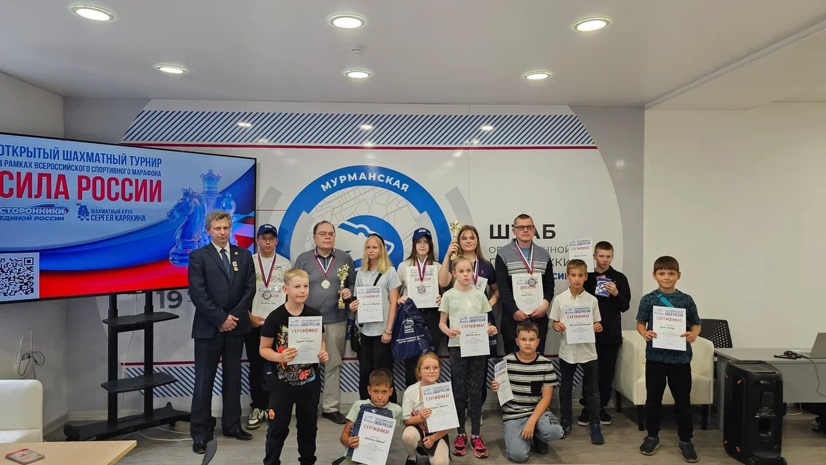 Соревнования прошли в рамках Всероссийского спортивного марафона «Сила России» Региональный этап Всероссийского спортивного марафона «Сила России» прошел в Штабе общественной поддержки «Единой России». За шахматные доски сели как опытные спортсмены, так и любители. В интеллектуальной битве приняли участие 25 северян — школьники, молодёжь, участники СВО, ветераны спорта. Состязания прошли по швейцарской системе в двух возрастных группах — до 18 лет и старше. Контроль времени - блиц 3+2, что потребовало от игроков максимальной концентрации, быстроты мышления и точности расчётов. «Шахматы — это не просто спорт. Это тренировка ума на протяжении всей жизни и философская игра, в которой каждый может проявить себя. Мы рады, что северяне поддержали региональный этап марафона и получили шанс выйти в финал», — отметил председатель регионального общественного совета проекта «Детский спорт», депутат Совета депутатов Мурманска Сергей Тян. По итогам турнира победители получили путёвку в онлайн-этап