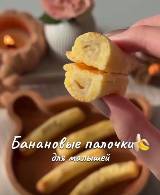 Банановые палочки 🌟 Ингредиенты: 🔘 Яйцо - 1 шт. 🔘 Детский творожок - 1 баночка. 🔘 Полента - 1 ложка. 🔘 Банан - 1 шт. Приготовление: 🔘 Взбиваем яйцо. 🔘 Добавляем творожок и поленту. Все хорошо размешиваем. 🔘 Нарезаем банан на дольки или кусочки и выкладываем в формочку. 🔘 Добавляем наше тесто в форму. 🔘 Выпекаем 15-20 минут в разогретой духовке на 180 градусов Такой перекус понравится вашему ребенку 🌼 Не одевай слона в пижаму 💤 | #Рецепты
