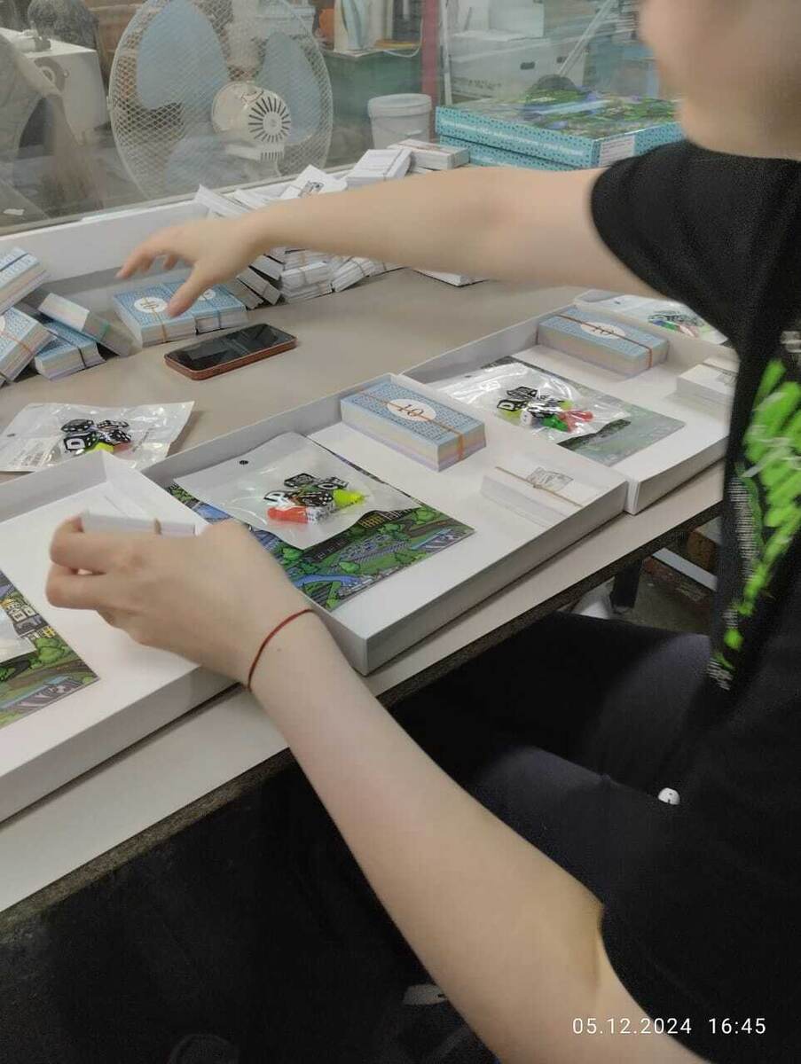 Обычно под конец лета из сезонной спячки выходят руководители по маркетингу и PR в больших компаниях. Впереди — сезон печати сувенирной продукции: календари, подарочные книги, настолки. Всё это не заказывают в первой половине года — дотягивают до сентября. В прошлом году, как раз в конце июля, к нам обратилась компания АО «ГК ЕКС». Захотели 1000 комплектов настольной игры. Быстро договорились по цене, объёму работ и срокам — крайний срок: отдать клиентам 10 декабря, но лучше — раньше. Ничего сверхъестественного. В студии НАДО мы такое умеем: натянули их тематику на классическую монополию, связались с типографией, согласовали сроки — когда нужно передать макет в производство. Тысяча настолок — это довольно большой заказ для типографии. Нет, печатать его несложно: игровое поле, брошюра, стопка карточек, фишки и кубики в индивидуальном пакете. Проблема — в сборке. Это монотонная работа без права на ошибку. Случайно не положил одну карточку или перепутал — хана. Игра испорчена, до финала н