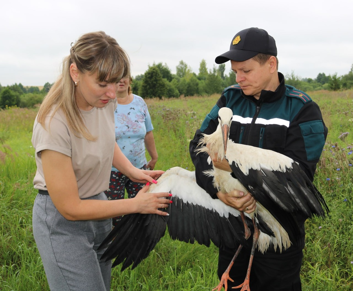 ✨Операция спасения прошла успешно. 🪽Птенца аиста, не способного летать, обнаружили местные жители в агрогородке Ордать. ✅На помощь птице пришли представители Шкловского РОЧС и райветстанции. После обследования аистенок был отправлен в Могилевский зоосад, где ему помогут встать на крыло. Подробную историю спасенного аиста читайте в районной газете.