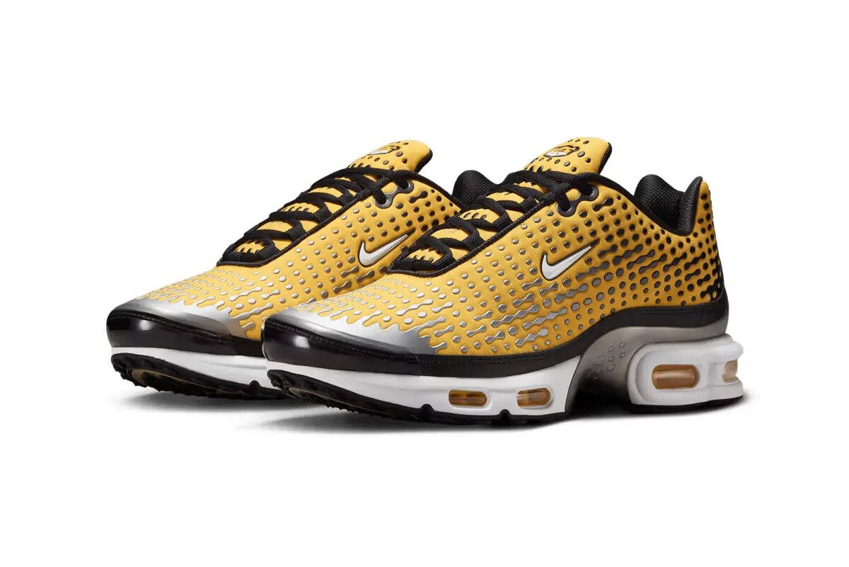 Слухи, циркулировавшие с начала года, получили официальное подтверждение. Согласно данным портала Hypebeast, Nike готовится к перезапуску модели Air Max Plus VII, впервые увидевшей свет в 2005 году. Возвращение приурочено к 20-летию серии Tuned Air и начнётся с релиза знаковой расцветки «Varsity Maize». Ожидается, что осенью 2025 года на полках магазинов появятся три версии этих кроссовок. Первая — та самая «Varsity Maize» (HQ2197—700) с ярко-жёлтой сетчатой основой и градиентным точечным узором, переходящим от металлического серебра к чёрному. 👉 Такие новости мы постоянно публикуем в Telegram. Подписывайтесь на канал, чтобы ничего не пропустить ;) Дополняют образ волнообразные накладки из термополиуретана (TPU) и видимые жёлтые воздушные подушки в подошве. Вторая пара (HQ2197—100) предлагает более минималистичный подход. Её сетчатый верх выполнен в белом цвете и украшен чёрными точечными наложениями, которые создают иллюзию стекающих капель дождя. Завершают дизайн матовый кожаный зад